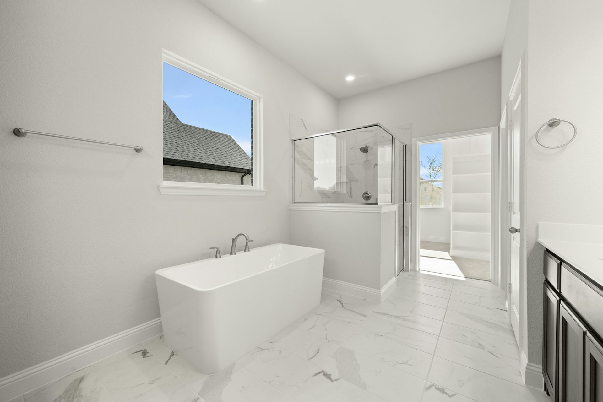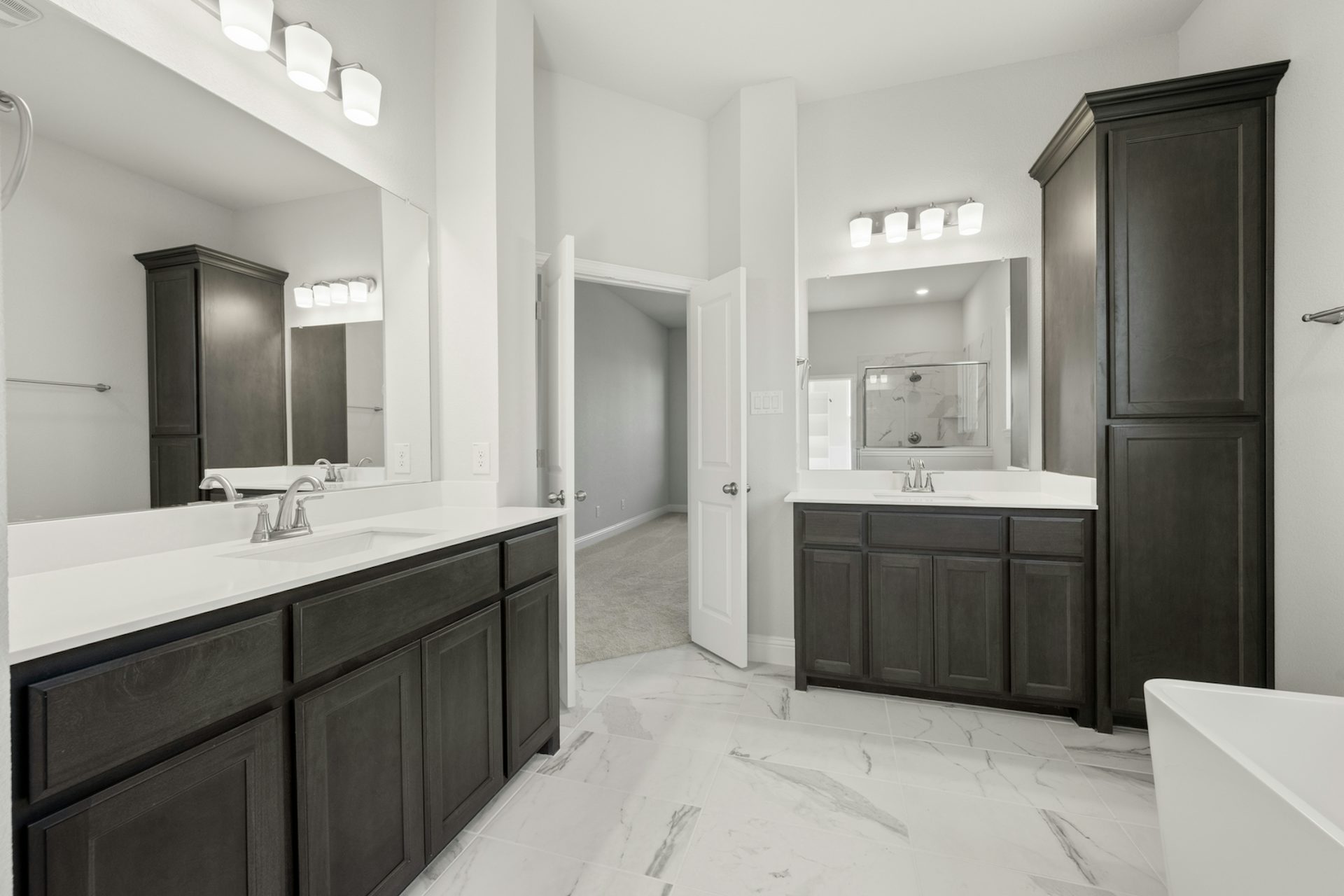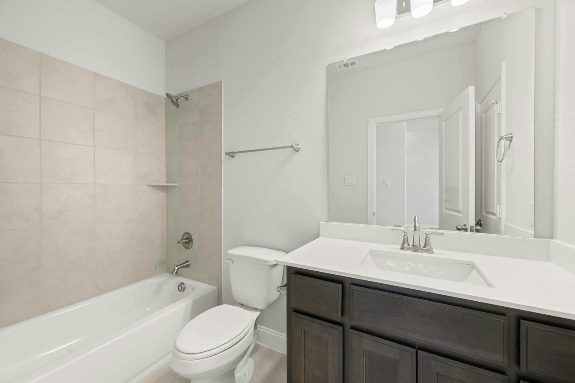 Discover the perfect blend of space and comfort in this beautifully designed two-story, 4-bedroom home featuring an open-concept layout that seamlessly connects the family room, dining area, and kitchen—ideal for both everyday living and entertaining. The main floor includes a luxurious Owner’s Suite with an expansive walk-in closet and a spa-like bathroom complete with dual vanities, a walk-in shower, and a separate soaking tub. A secondary bedroom on the first floor offers its own full bath and walk-in closet, providing a private retreat for guests or multigenerational living. Upstairs, you’ll find two additional bedrooms, a full bath, and a versatile game room. Additional highlights include a private study, a covered patio perfect for outdoor enjoyment, and a spacious 2-car garage.