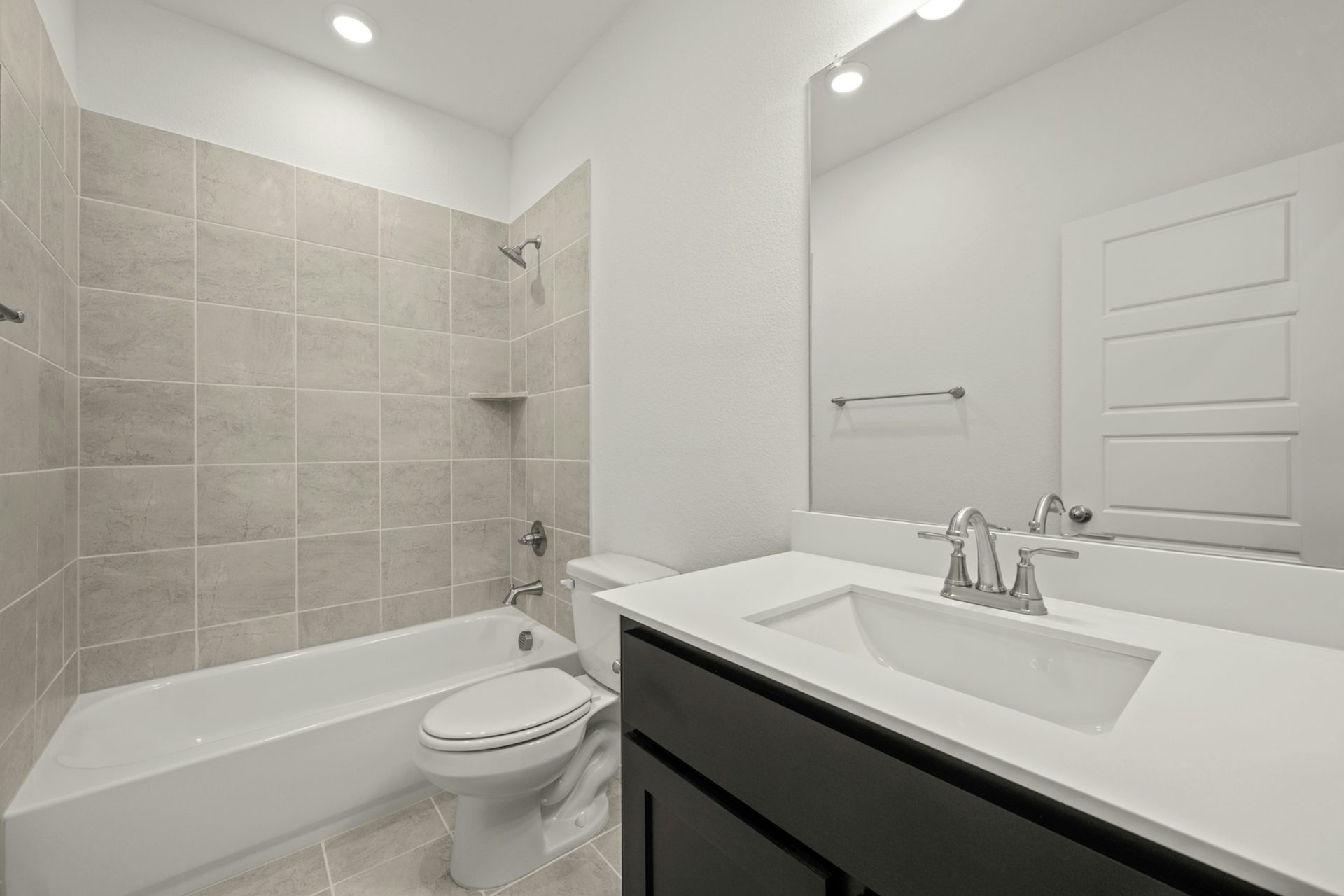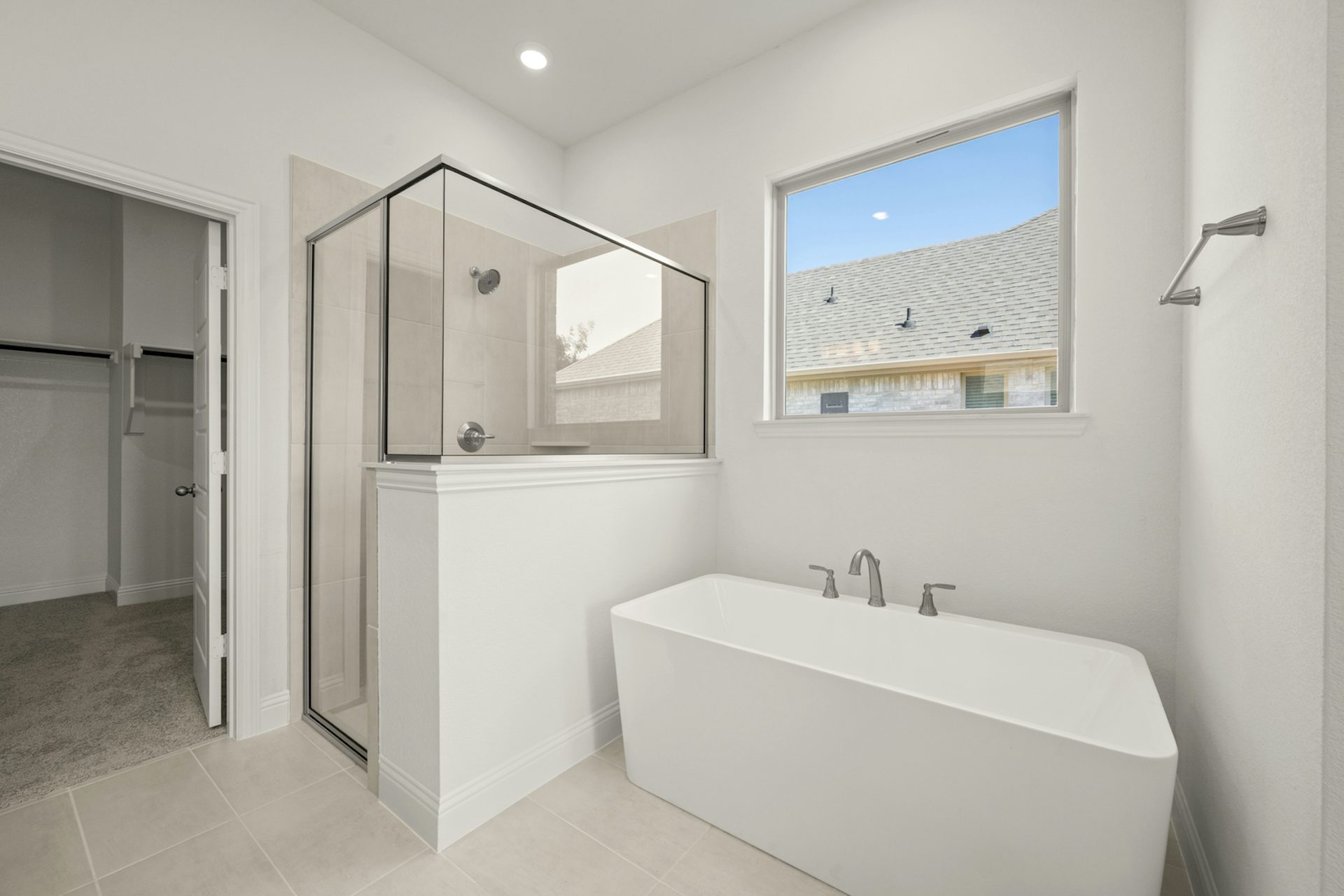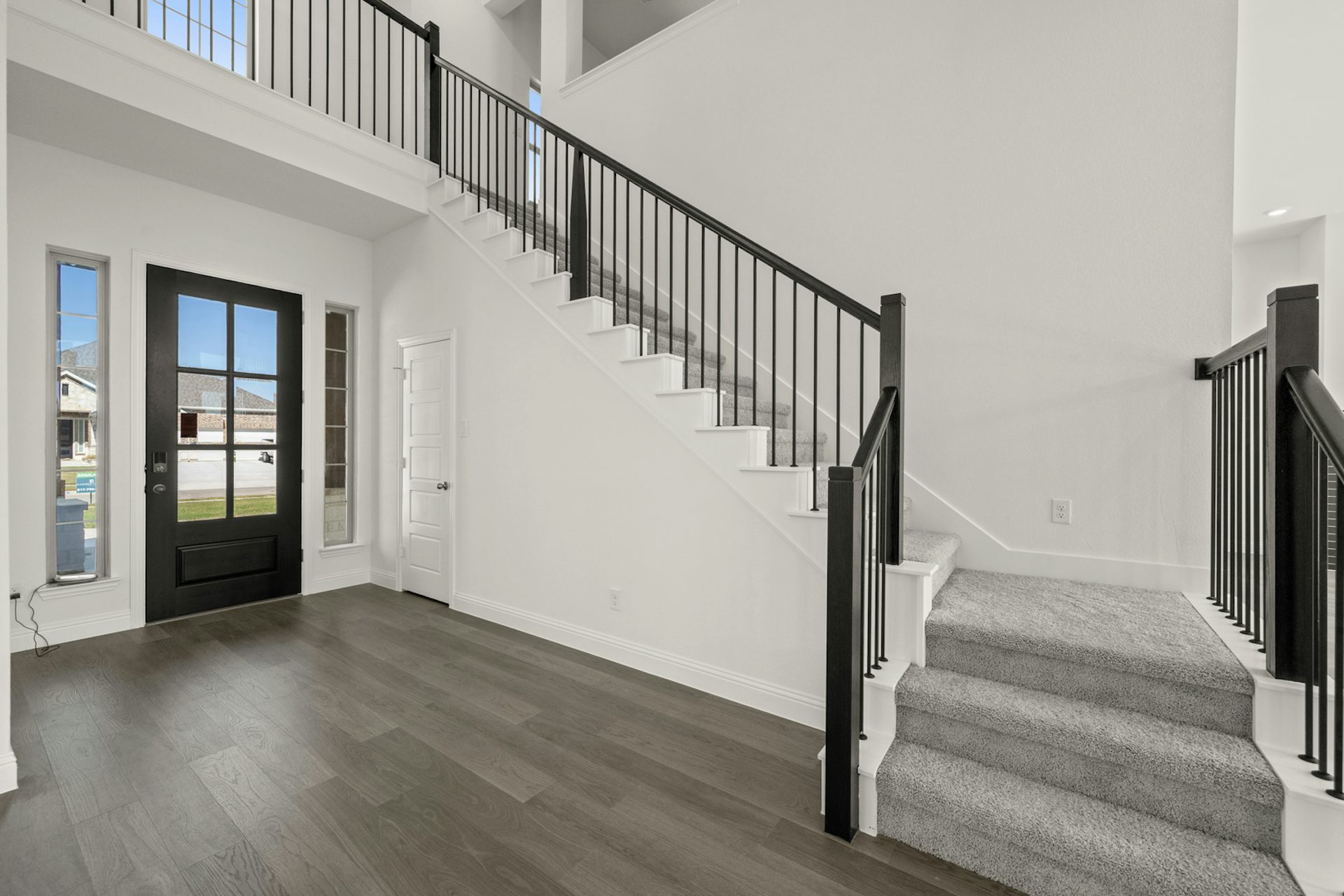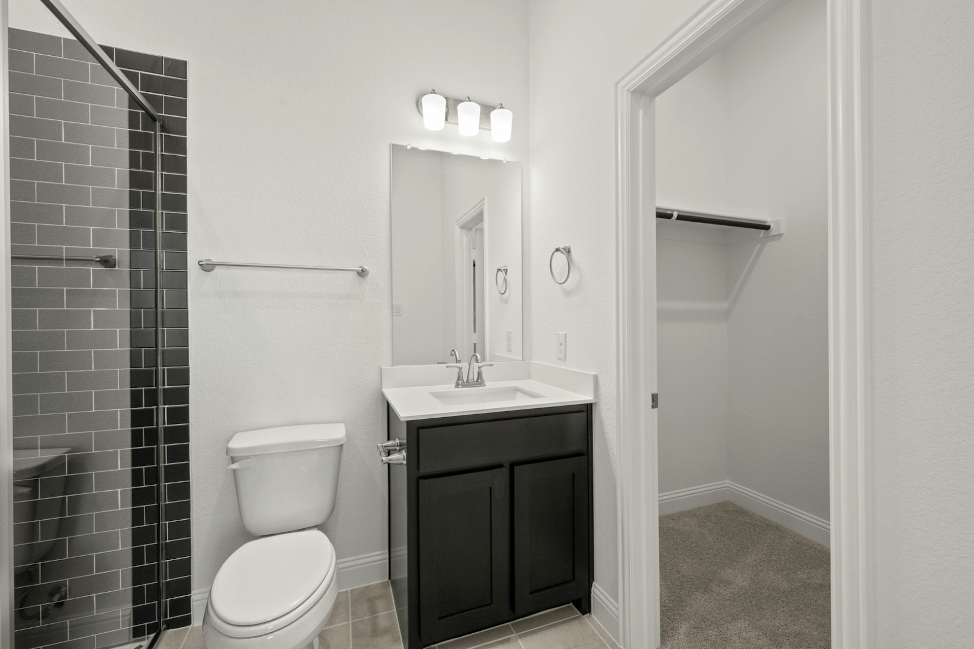 The Manor's extended covered entry and impressive foyer with soaring two-story ceilings flow into the family room, with a view of the sought-after covered outdoor living beyond. The spacious family room opens to the breakfast nook and kitchen for open floor plan living. The kitchen is complete with a large center island, plenty of cabinets and counter space, and a large walk-in pantry. The owner's suite is finished with a 12' ceiling and a large walk-in closet. The luxe owner's bathroom is complete with separate vanities, a glass-enclosed shower, a free-standing tub, a linen closet, and a private water closet. A secluded guest suite is located on the first floor and features a large walk-in closet and a private full bathroom. The second floor holds three bedrooms, all with walk-in closets, one shares a full bath with separate vanities. An oversized game room allows for plenty of space for kids to spread out to play or work. Additional highlights include a private study, dining room, powder bath, laundry with sink, a built-in desk in the kitchen, and additional storage throughout.