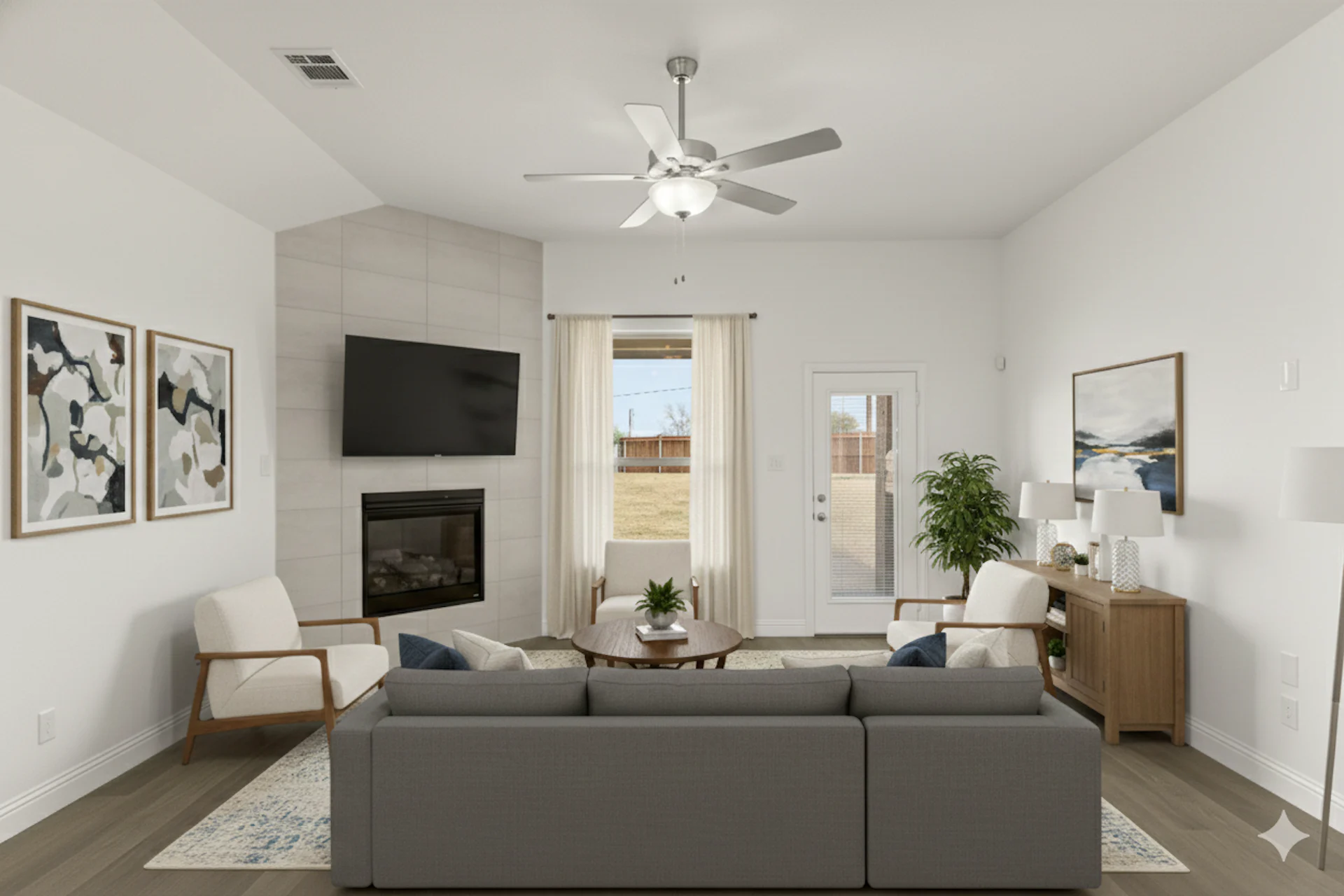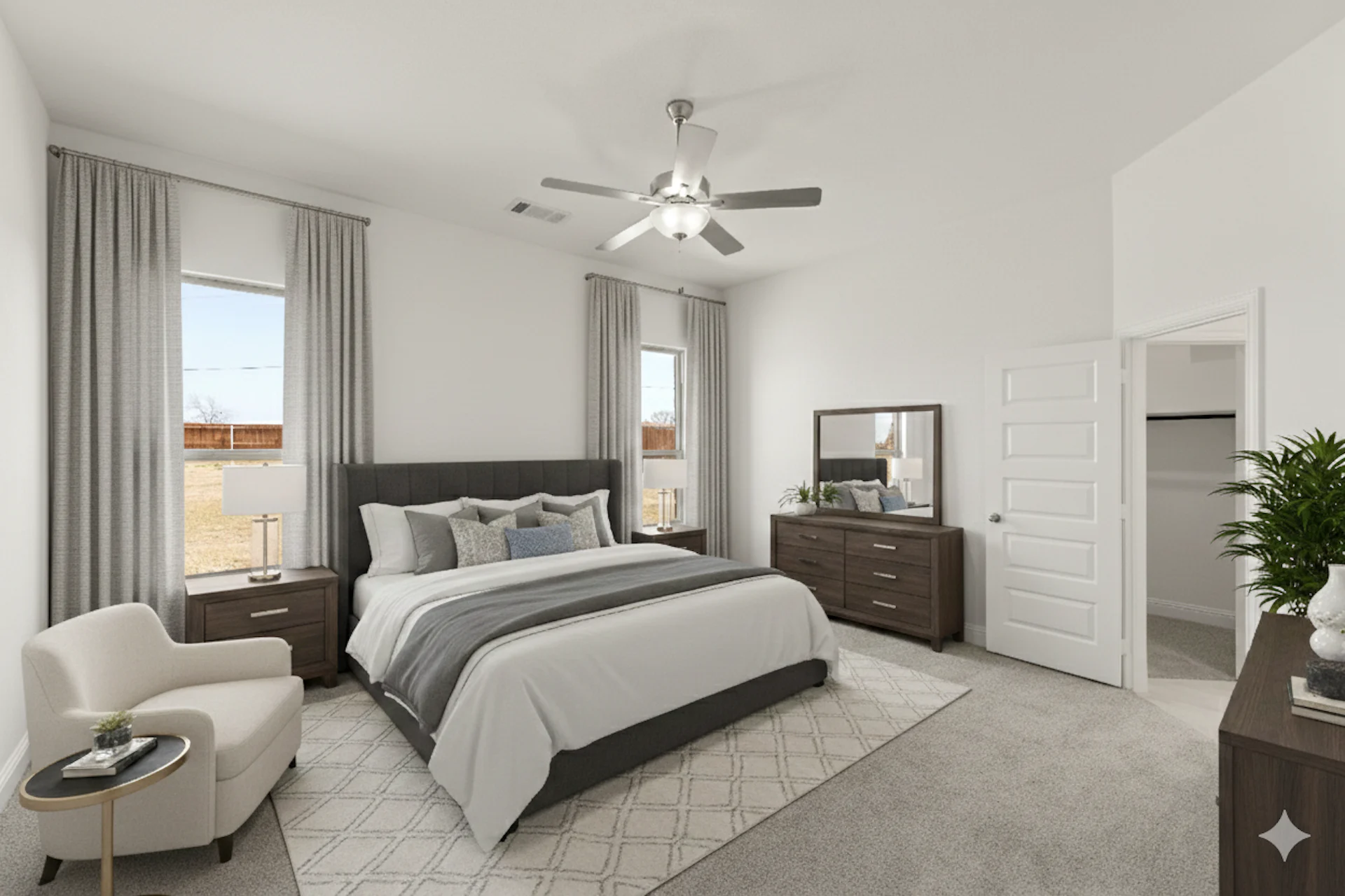 Welcome to the Brazos, where modern luxury meets thoughtful design. The stunning exterior boasts dark brick, white stone, and a 3-car garage. Inside, light luxury vinyl plank flooring flows throughout the open-concept living area, connecting the kitchen, dining, and family rooms. The kitchen features a central island and overlooks the family space. The spacious owner's suite includes a walk-in closet, dual vanities, soaking tub, and glass-enclosed shower. Upstairs, you'll find a game room, secondary bedrooms with walk-in closets, and a private bath. Situated on a quarter-acre lot backing to green space, this home also offers a study, laundry room, powder bath, and extra storage.
