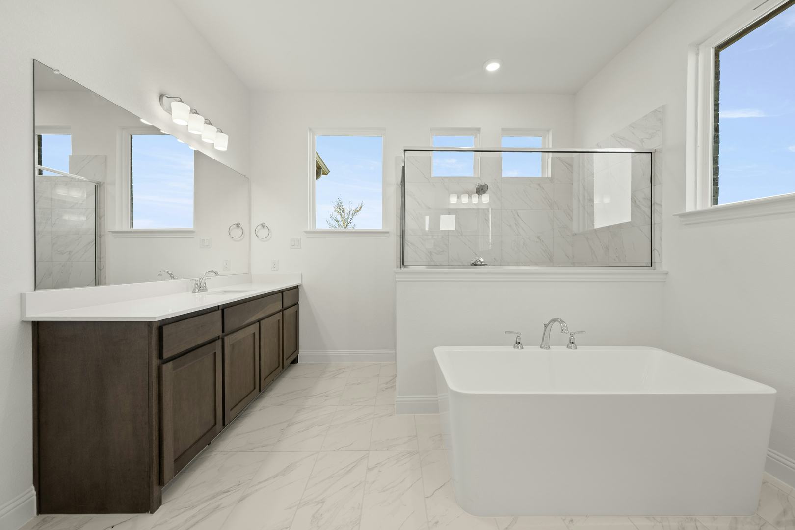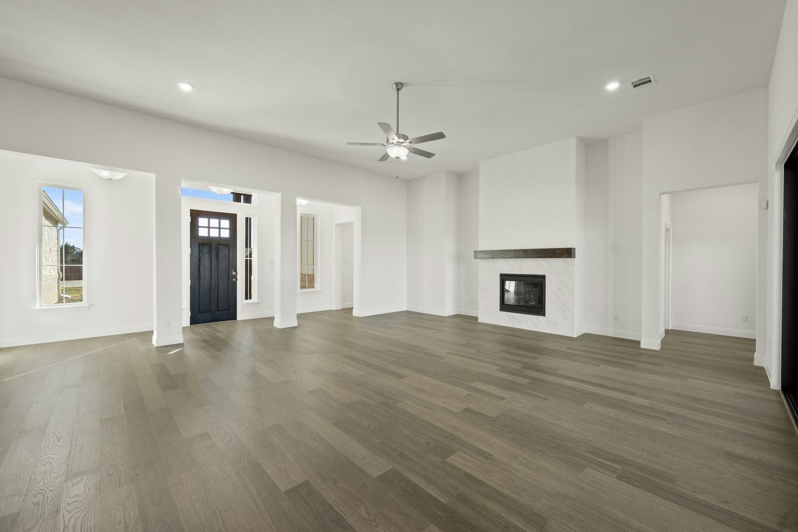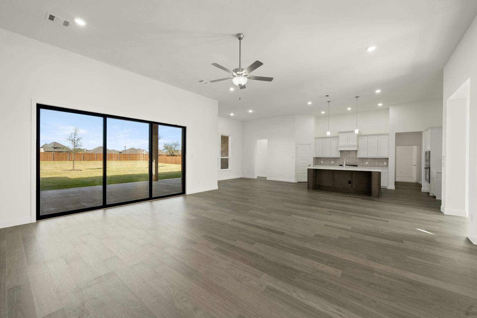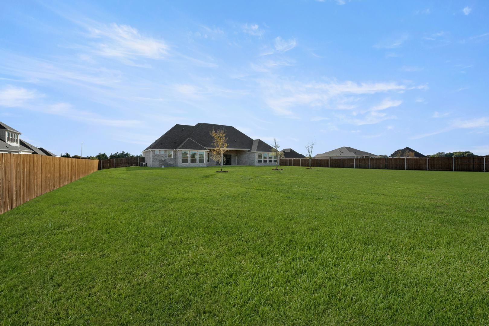 This beautifully designed one-story home offers 4 bedrooms, 3.5 bathrooms, and a 3-car garage—all thoughtfully laid out to balance style and function. From the welcoming covered front porch to the expansive open-concept living space, every detail is crafted for comfort and ease. The kitchen is a true centerpiece, featuring an oversized island with breakfast bar seating, generous cabinetry, and a spacious walk-in pantry. It flows effortlessly into the family room and dining nook, with views that extend to the large covered patio—perfect for indoor-outdoor entertaining. The private owner’s suite is tucked away at the rear of the home and includes a spa-like bath with dual vanities, a soaking tub, walk-in shower, and an oversized walk-in closet with direct access to the laundry room. Secondary bedrooms are well-sized with walk-in closets; two share a Jack-and-Jill bath, while the fourth bedroom includes its own en-suite—ideal for guests or multi-generational living. Additional highlights include a private study, media room, game room, and a convenient mudroom, all thoughtfully integrated into this flexible and functional layout.