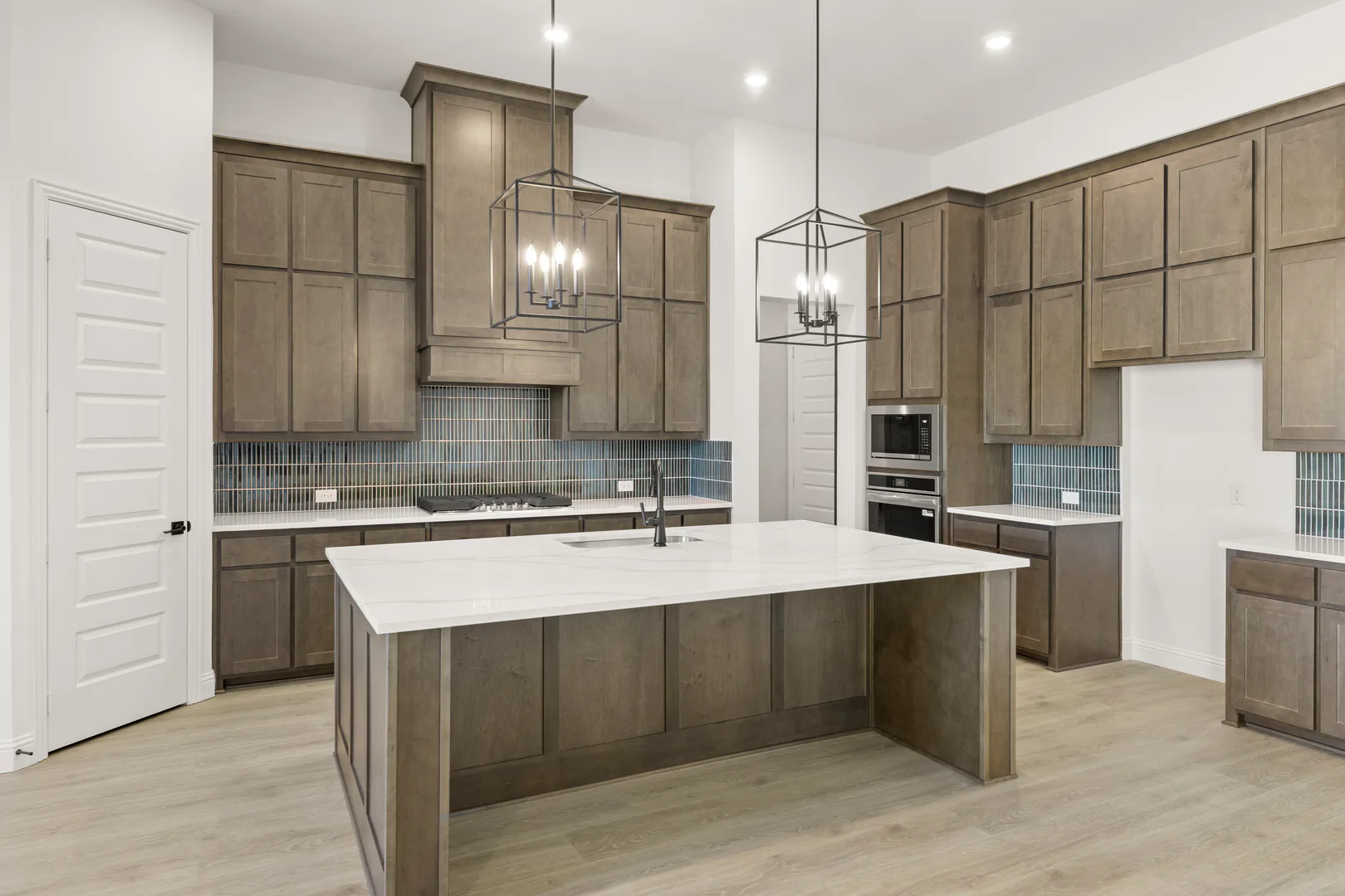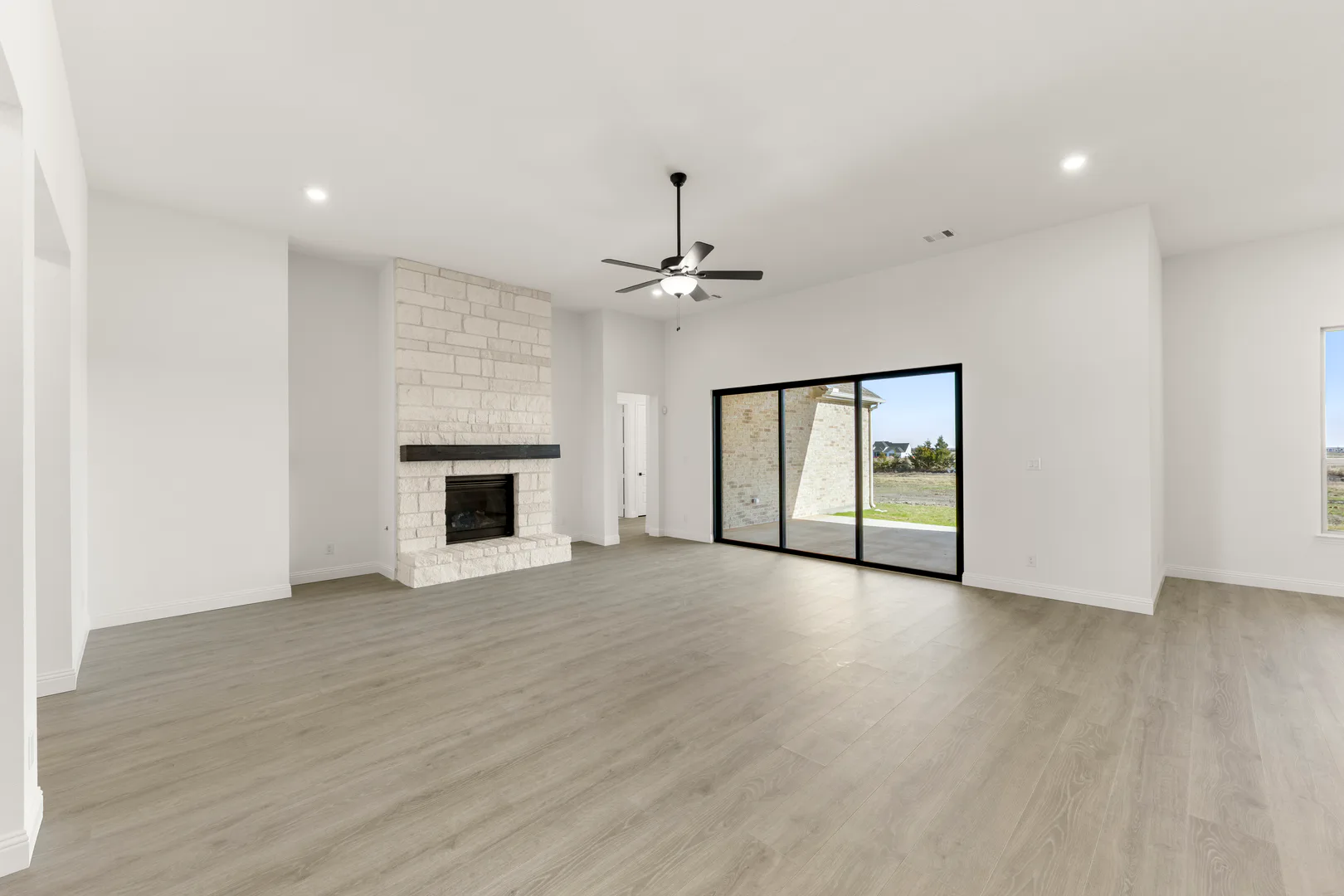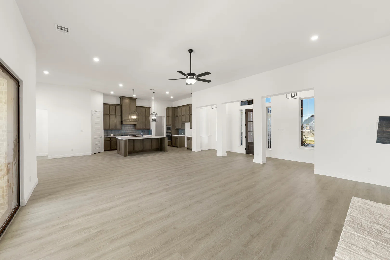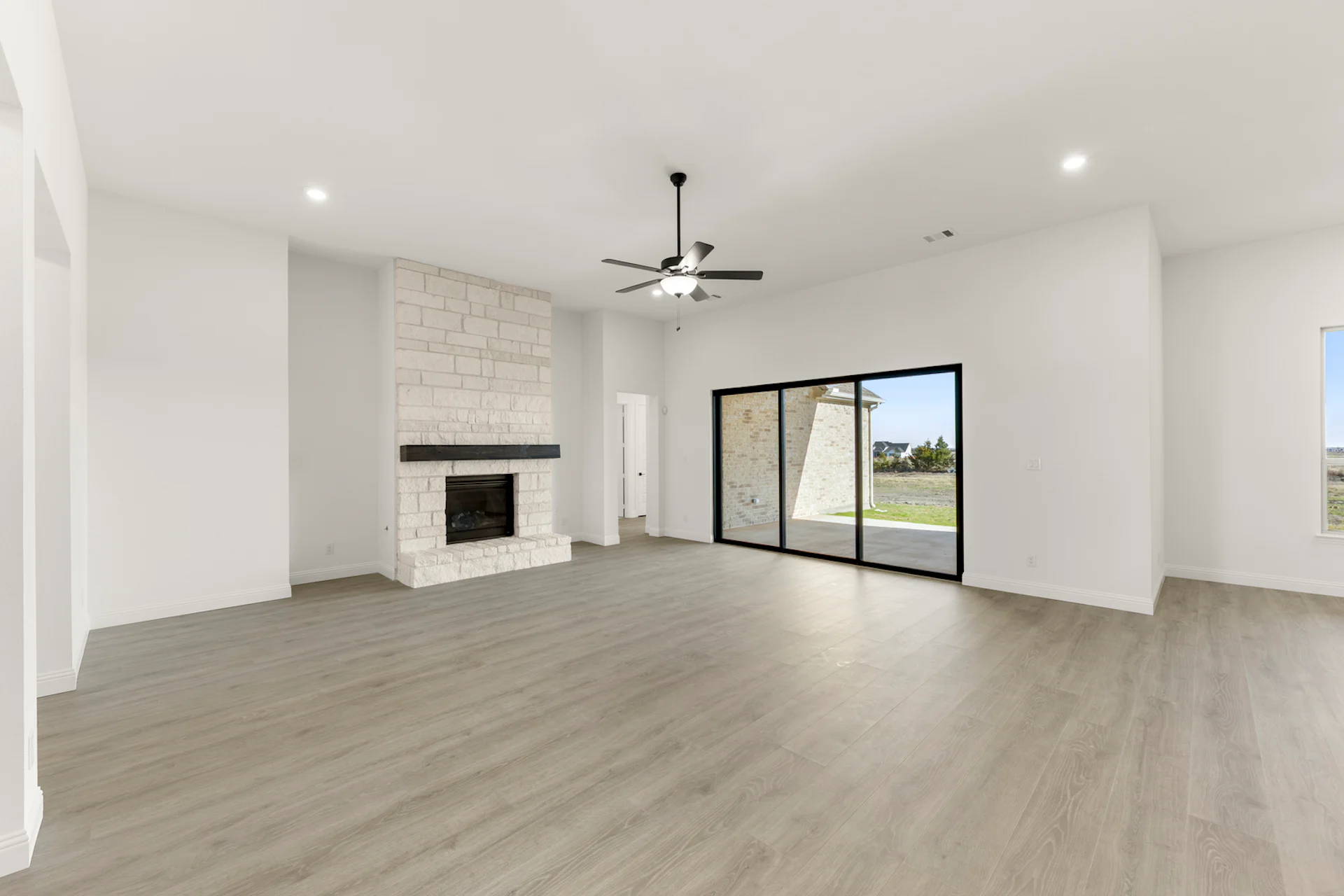 Introducing the exceptional Sperry large one-story floor plan, thoughtfully crafted for easy living and comfort. A welcoming covered porch opens into an open-concept layout that seamlessly connects the living area, kitchen, and family room. The kitchen boasts ample cabinet space, a spacious walk-in pantry, and a large island with a breakfast bar that overlooks the nook—ideal for entertaining. The living room extends through sliding doors to a spacious covered patio, perfect for outdoor enjoyment. The owner’s suite features a luxurious bath with dual vanities, a soaking tub, a walk-in shower, and a large walk-in closet. Secondary bedrooms are generously sized with walk-in closets and a shared Jack-and-Jill bath. A separate game room and guest suite offer excellent flexibility for an in-law suite or added privacy. Additional highlights include a private study, media room, mudroom, and a laundry room connected to the primary closet.