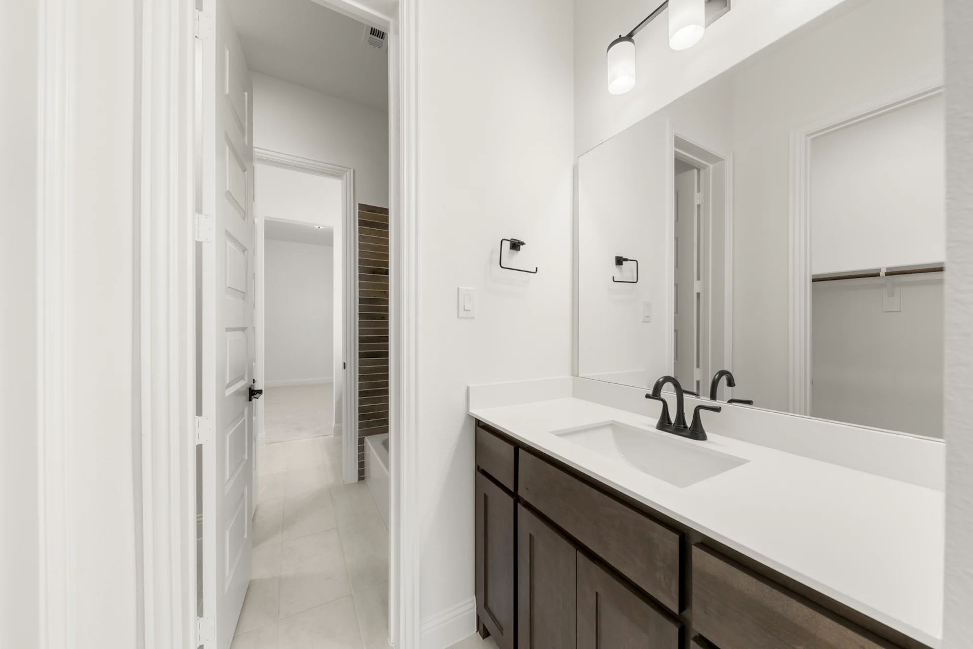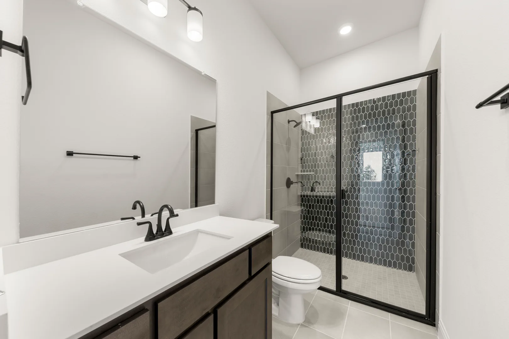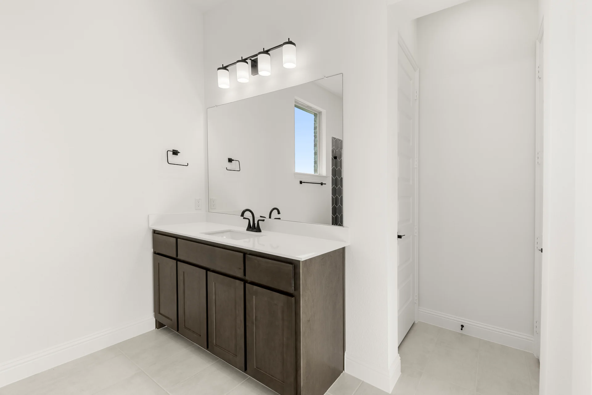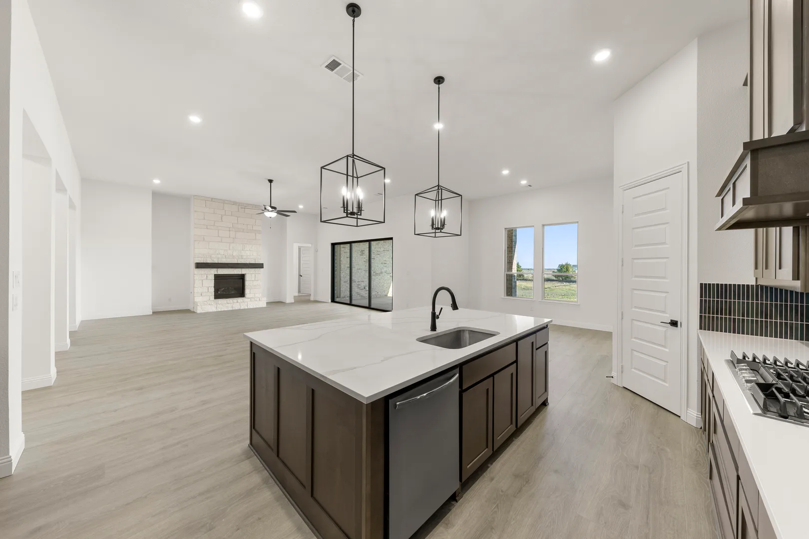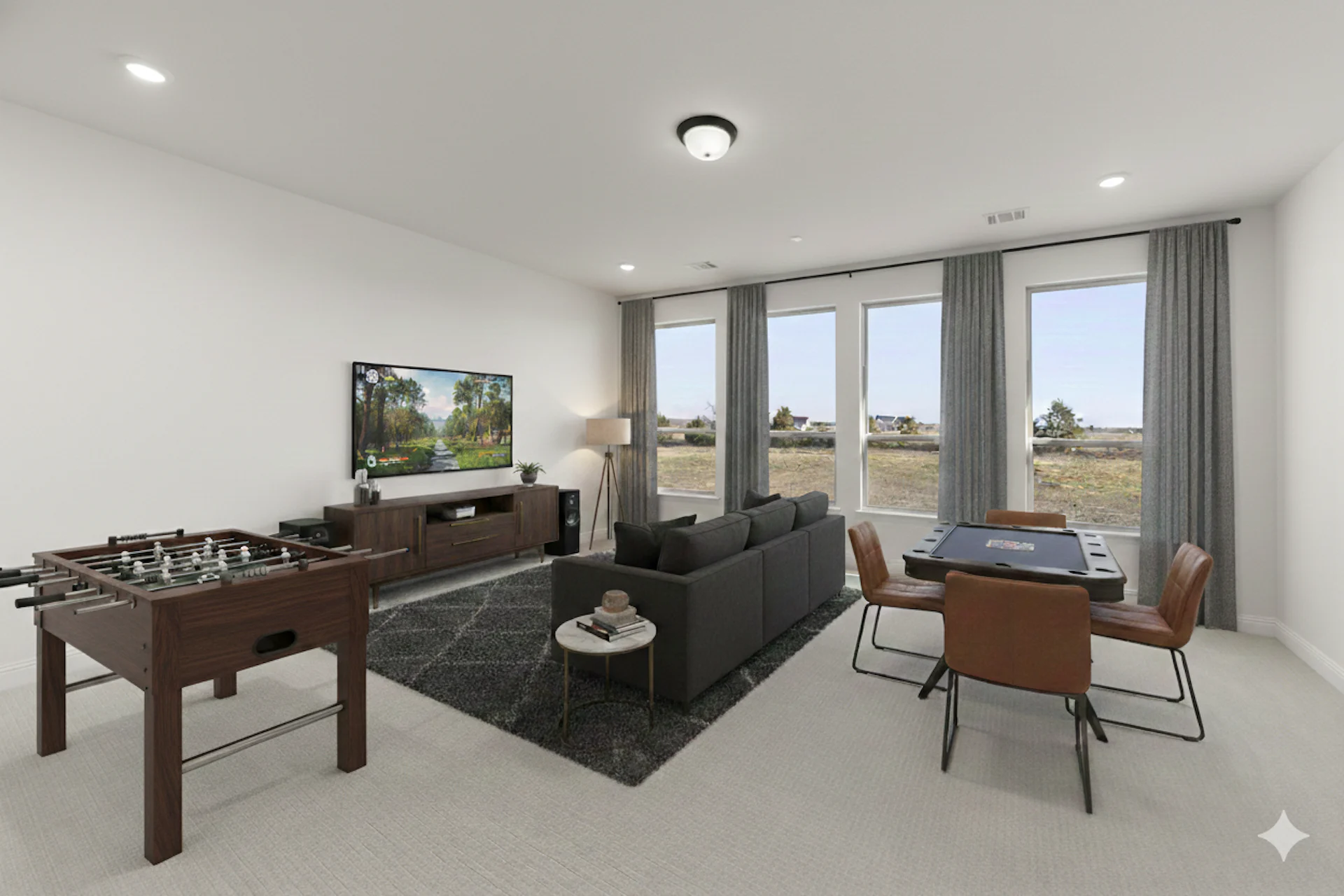 Introducing the exceptional Sperry large one-story floor plan, thoughtfully crafted for easy living and comfort. A welcoming covered porch opens into an open-concept layout that seamlessly connects the living area, kitchen, and family room. The kitchen boasts ample cabinet space, a spacious walk-in pantry, and a large island with a breakfast bar that overlooks the nook—ideal for entertaining. The living room extends through sliding doors to a spacious covered patio, perfect for outdoor enjoyment. The owner’s suite features a luxurious bath with dual vanities, a soaking tub, a walk-in shower, and a large walk-in closet. Secondary bedrooms are generously sized with walk-in closets and a shared Jack-and-Jill bath. A separate game room and guest suite offer excellent flexibility for an in-law suite or added privacy. Additional highlights include a private study, media room, mudroom, and a laundry room connected to the primary closet.